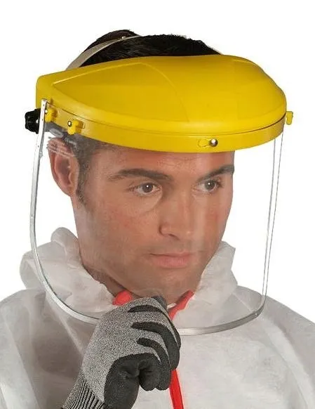 - osłona twarzy składająca się z szybki przeciwodpryskowej, nagłowia i zespołu zawiasowego