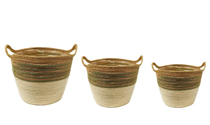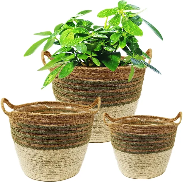- Zestaw 3 pięknych doniczek do roślin wewnętrznych: ten zestaw kosza na rośliny jest ręcznie pleciony z trawy morskiej seagrass, w 100% naturalny, bardzo piękne dekoracyjne doniczki, rozmiar największego kosza to 25 x 19 x 17,5 cm, średni rozmiar to 22 x 16 x 15,5 cm, a mały 18 x 18 cm 14 x 13 cm cm, które pasują do doniczek i roślin o różnych rozmiarach.