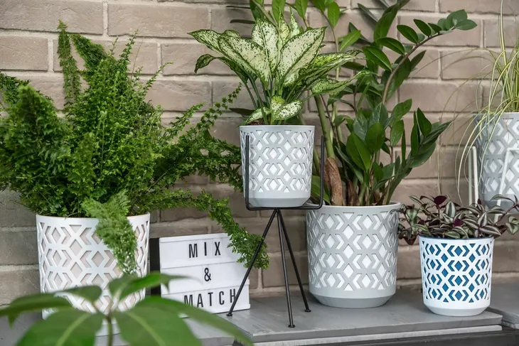 - Składa się z dwóch części - ażurowej osłonki i doniczki