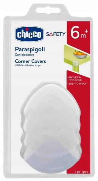 Bezpieczeństwo w , kiedy zaczyna raczkować, wstawać, a potem chodzić, staje się coraz bardziej zainteresowane swoim otoczeniem. Dzieci są szybkie i ciężko przewidzieć, co zamierzają zrobić. Chwila rozkojarzenia, przeoczenie to dla nich wystarczająco, aby zrobić bałagan czy wywołać poważne ryzyko dla ich zdrowia. To właśnie po to, by chronić dziecko zarówno w domu, jak i na zewnątrz, Chicco stworzyło kompletną linię produktów bezpieczeń Osłonki na kanty zakładane na narożniki stołu zapobiegają ryzyku zranienia się dziecka. Osłonki zrobione są z miękkiego, nietoksycznego plastiku. Łatwo je zamontować dźwięki dwustronnej taśmie samoprzylepnej.