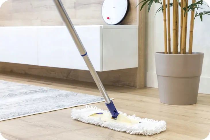 - Przetrzeć podłogę lekko nawilżonym (nie mokrym!) mopem, a następnie natychmiast osuszyć.