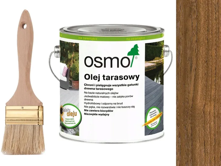 - Olej tarasowy Osmo to transparentna lub bezbarwna powłoka na bazie naturalnych olejów roślinnych opracowana specjalnie do ochrony, renowacji i barwienia powierzchni tarasów drewnianych.