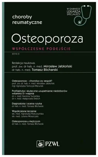 Drugi numer, pod redakcją naukową prof. zw. dr. hab. n. med. Mirosława Jabłońskiego oraz dr hab. n. med. Tomasza Blicharskiego, skierowany do praktykujących ortopedów, reumatologów, lekarzy rodzinnych, specjalistów rehabilitacji medycznej oraz innych specjalistów, poświęcony jest tematowi osteoporozy.W numerze omówiono:Osteoporozę jako poważny problemem zdrowotny i socjoekonomiczny starzejących się społeczeństw współczesnego ś profilaktyki, ze szczególnym zwróceniem uwagi na aktywność fizyczną i dobrze zbilansowaną dietę oraz ważną rolę systematycznego uzupełniania niedoborów witaminy D i ę osteoporozy jako istotny element profilaktyki (rola badań przesiewowych) oraz właściwego rozpoznania i stosowane leki - szeroka gama preparatów przydatnych w leczeniu osteoporozy stwarza możliwości kontroli postępów choroby, a nowoczesne leczenie pozwala na utrzymanie dobrej jakości ż różnice w leczeniu farmakologicznym osteoporozy u kobiet i u mężczyzn - precyzyjna indywidualizacja leczenia.