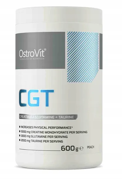 OstroVit CGT 600 g to suplement diety stworzony z myślą o osobach aktywnych fizycznie, które szukają suplementacyjnego wsparcia dla swoich treningów. Produkt zawiera aż 3 kluczowe związki, a mianowicie kreatynę, l-glutaminę i taurynę.