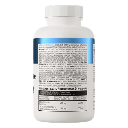 - Źródło maślanu sodu - jedna porcja suplementu diety dostarcza do organizmu 600 mg maślanu sodu, który zawiera 30% kwasu masłowego.