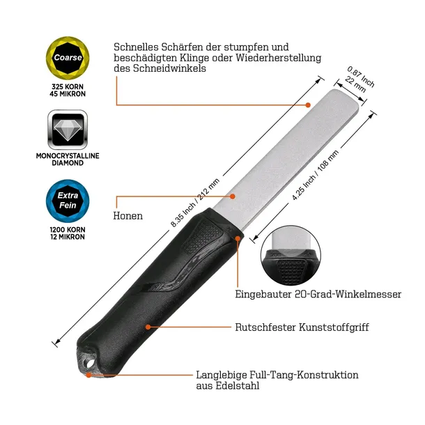 - Trwały, monokryształowy stal nierdzewna pokryta diamentem. Powłoka diamentowa tego produktu charakteryzuje się bardzo wysoką twardością. Może naostrzyć wszystkie Twoje narzędzia jak nowe.