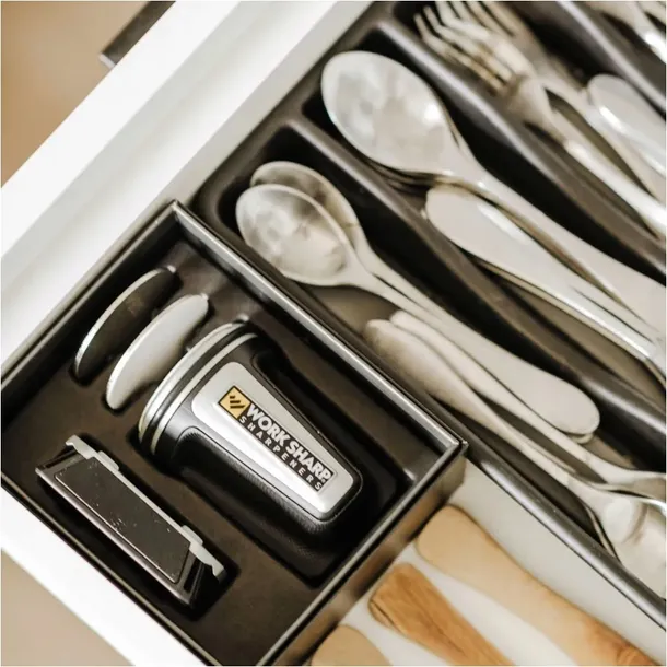 Work Sharp Rolling Knife Sharpener jest wyposażony w trzy gradacje płytek ostrzących, co umożliwia zarówno wyprowadzenie, jak i wygładzenie krawędzi noża. Ta wieloetapowa możliwość ostrzenia gwarantuje uzyskanie idealnie ostrej, gładkiej i równej krawędzi, niezależnie od stopnia stępienia noża. Kompaktowa konstrukcja urządzenia gwarantuje łatwe przechowywanie w szufladzie kuchennej jak i wygodę transportu. Dzięki temu system ostrzący Work Sharp Rolling Knife Sharpener jest zawsze pod ręką, kiedy będzie nam potrzebny.