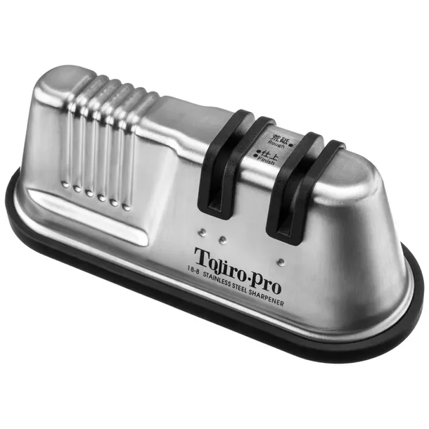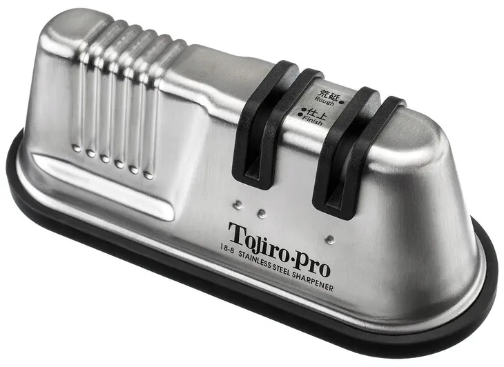 Dwufazowa ostrzałka ceramiczna, zaprojektowana specjalnie dla noży Tojiro i przeznaczona do ostrzenia wszystkich rodzajów noży, z wyjątkiem tych o szlifach jednostronnych, np. tradycyjnych noży japońskich. Dzięki wodzie proces ostrzenia przebiega szybciej, a fabrycznie ustawione otwory ułatwiają naostrzenie noża pod odpowiednim kątem. Gumowany i podstawa ma właściwości przeciwpoślizgowe.