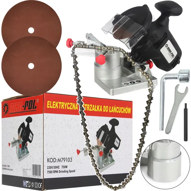 ELEKTRYCZNA OSTRZAŁKA DO ŁAŃCUCHÓW 90W 230V Z TARCZĄ DO OSTRZENIA