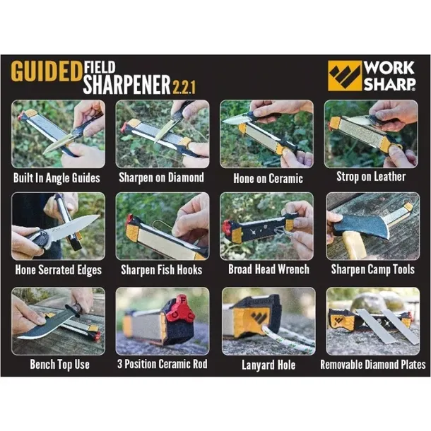 Work Sharp Guided Field Sharpener to kompaktowa ostrzałka do noży i narzędzi, umożliwiająca przeprowadzenie pełnego procesu ostrzenia w terenie. Niewielkie gabaryty, wysoka funkcjonalność oraz efektywność, powodują, że ta uniwersalna ostrzałka jest doskonałą propozycją dla turystów, myśliwych, wędkarzy oraz militarystów!