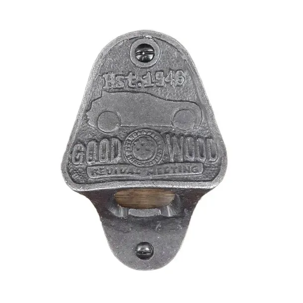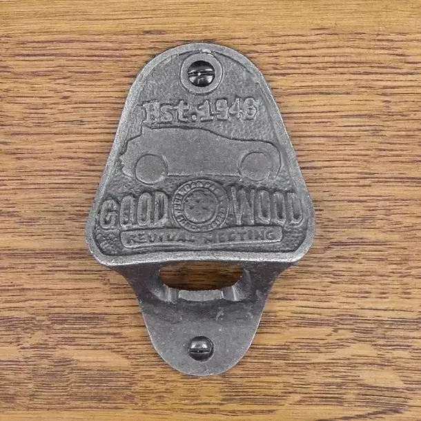 Na najbardziej wysuniętej części widnieje napis EST.1948 GOODWOOD oraz zarys samochodu.Do otwieracza polecamy pojemniki na kapsle, które możemy zamontować pod spodem.