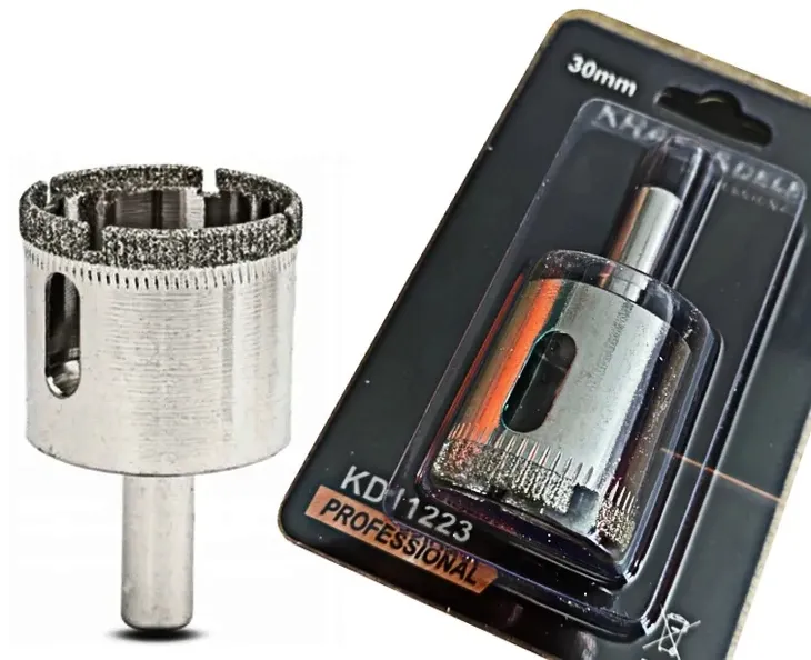 Otwornica koronowa diamentowa polskiej marki Kraft&Dele o modelu KD11225 służy do wiercenia bez udaru "na mokro" w płytkach gresowych, ceramicznych, marmurowych, porcelanie oraz w twardych kaflach. Otwornica została wykonana z wysokiej jakości stali węglowej a część roboczą stanowi bardzo drobny i gęsty nasyp diamentowy lutowany próżniowo do walcowego stalowego korpusu