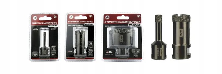 Otwornice VACUUM dzięki technologii lutowania próżniowego na bazie mosiądzu, a nie laserowego połączenie ziaren diamentu z osnową i korpusem odznacza się większą wytrzymałością. Wiertła i otwornice VACUUM przystosowane są do pracy na sucho.