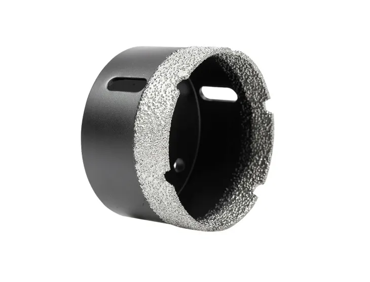 Koronki diamentowe osadzone w technologii próżniowego lutowania gwarantują szybkość wiercenia w najtwardszych materiałach. Dodatkowe boczne otwory wentylacyjne przyspieszają wiercenie i usuwanie materiału. Jakość na najwyższym poziomie.