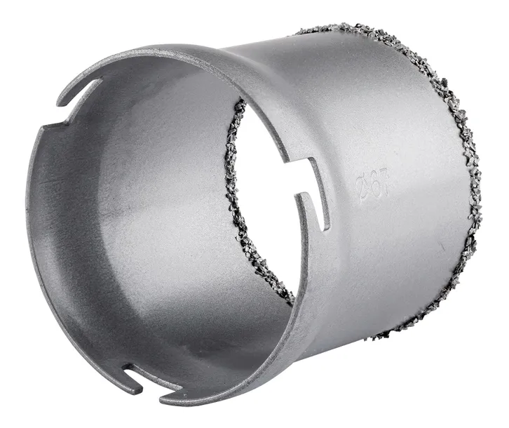 Otwornica wolframowa 67 mm 56T741 marki GRAPHITE to otwornica przeznaczona do pracy w cegłach, pustakach, betonie komórkowym, płycie kartonowo-gipsowej oraz lekkich materiałach budowlanych. Posiada wysokość 68 mm i zapewnia głębokość wiercenia 57 mm. Krawędź tnąca otwornicy pokryta została nasypem z węglika wolframu, a jej maksymalna prędkość obrotowa wynosi 1200 obr./min. Narzędzie jest przeznaczone do użytkowania z tarczą 56T744 do otwornic wolframowych oraz wiertłem pilotującym 56T745. Może być stosowane do wszelkich prac instalacyjnych, takich jak montaż gniazdek prądowych, puszek rozdzielczych czy rur. Można jej używać również do rur przepustów kablowych, rur wentylacyjnych czy wentylatorów instalacji w kuchni lub łazience.