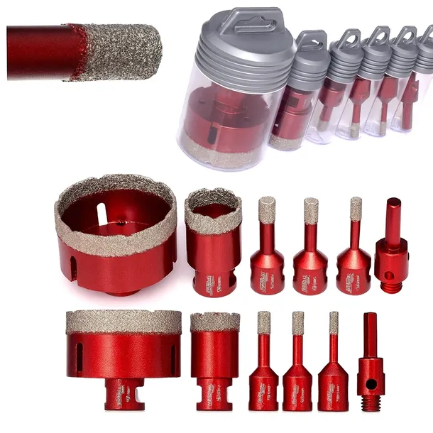 ⭐Zestaw otwornic diamentowych M14 KD11219 to niezawodne narzędzie od renomowanej polskiej marki Kraft&Dele, zaprojektowane do precyzyjnego wiercenia bez udaru "na mokro" w różnorodnych materiałach, takich jak płytki gresowe, ceramiczne, marmurowe oraz porcelanowe. Otwornice wykonane są z wytrzymałej stali węglowej, a ich część robocza została pokryta wysokiej jakości, drobnym nasypem diamentowym, lutowanym próżniowo do solidnego stalowego korpusu. ⭐Każda z otwornic jest starannie zapakowana w praktyczny, odkręcany pojemnik plastikowy, co ułatwia organizację stanowiska pracy oraz zapewnia wygodne przechowywanie narzędzi. Ten zestaw ośmiu otwornic to idealne rozwiązanie dla profesjonalistów oraz pasjonatów, którzy cenią sobie jakość oraz precyzję wykonania.