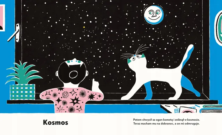 Pewnego dnia żółty balonik wyfrunął z dziecięcego pokoju. Przejrzał się w kałuży, zajrzał do przedszkola, z góry podziwiał miasto. Leciał nad lasami, rzekami i oceanami. Balonik unosił się wciąż wyżej i dalej! Czy dotknie gwiazd? Czy zobaczy kometę? Książka kartonowa dla najmłodszych dzieci. Pa, pa, baloniku! przybliża pojęcia blisko-daleko, dom, dzielnica, miasto, kraj, kontynent. Jest ilustrowanym przewodnikiem po otoczeniu, obrazkowym słownikiem pełnym różnorodnych pojęć, treningiem spostrzegawczości i pamięci. Nauką i zabawą.