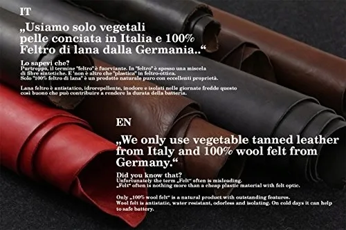 • Różnica w stosunku do zawodów – wszystkie nasze produkty są wykonane z wysokiej jakości naturalnych materiałów. Do tego używamy 100% filcu wełnianego z merynosów i najlepszej skóry garbowanej roślinnie z Włoch (po prostu fantastycznie pachnie!)