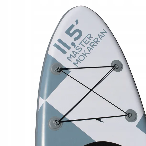 Paddleboard MASTER Aqua Mokarran - 11,5" przeznaczony jest dla początkujących i zaawansowanych użytkowników na spokojnych wodach i na umiarkowanych falach. Większy rozmiar, a co za tym idzie maksymalne możliwe obciążenie 160 kg zapewnia doskonałą zabawę w pojedynkę jak i rodzicom z dziećmi. Sztywność SUP zapewnia grubość 15 cm i dwuwarstwowy materiał DROP STICH. Wykonany jest z materiałów odpornych na słoną wodę i promieniowanie UV, można go łatwo napompować, opróżnić i zapakować w praktyczną torbę.