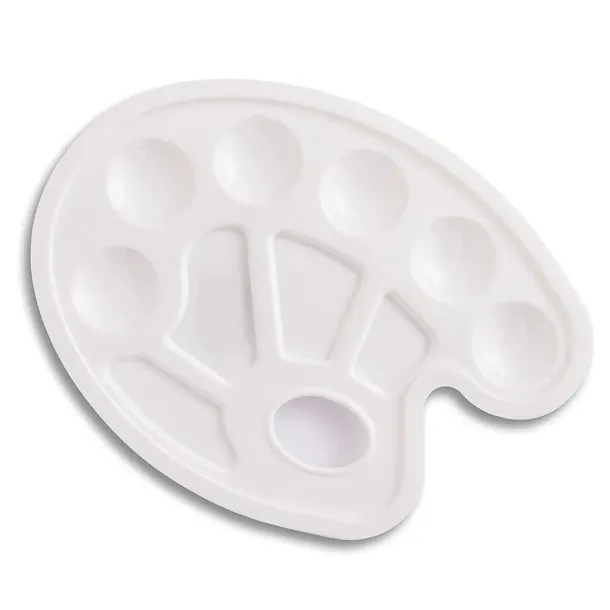 Paleta malarska plastikowa, owalna. Polecana głównie do farb akrylowych, temper i akwareli. Wymiary (około): 23 x 17 cm. Kolor: biały