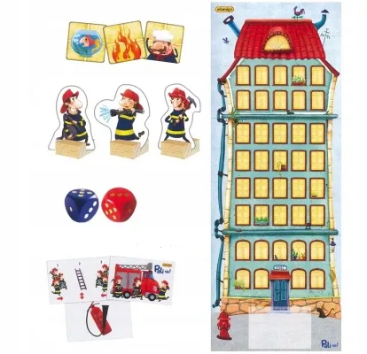 Ta rodzinna gra polega na przesuwaniu figurek strażaków zgodnie z kartami ruchu, które dyktują kierunki w danej kolejce. Przed rozpoczęciem gry należy rozłożyć karty pożarów po dwa na każde piętro tak, aby gracze widzieli jedynie rewers. Następnie należy odsłonić kartę z ruchami i przesunąć figurki zgodnie z nimi. Gracz, który trafi na pożar rzuca kośćmi, jeśli liczba oczek wyrzucona kością niebieską, która symbolizuje wodę, jest równa lub większa od liczby na kości czerwonej, która symbolizuje ogień, pożar uznaje się za ugaszony. Wtedy gracz zabiera kartę pożaru, która trafia na jego konto.