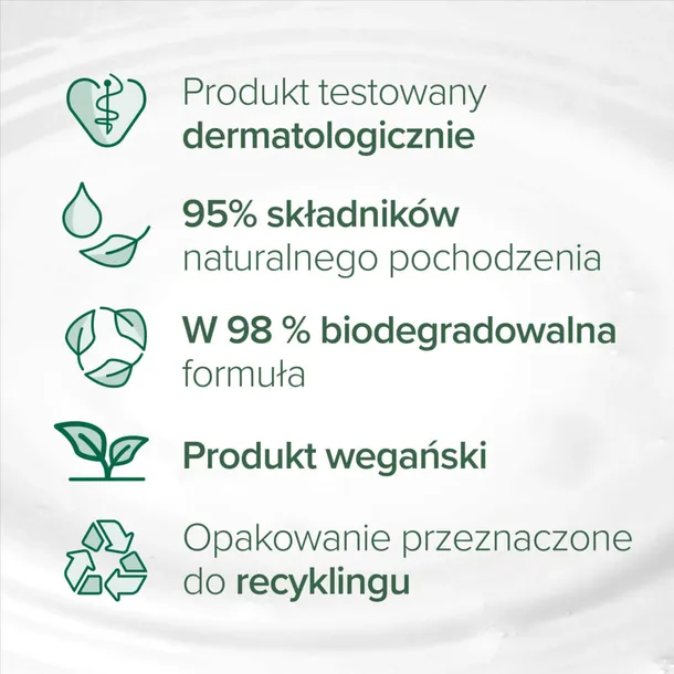 - Łagodna formuła – odpowiednia dla każdego typu skóry, w tym wrażliwej i suchej.