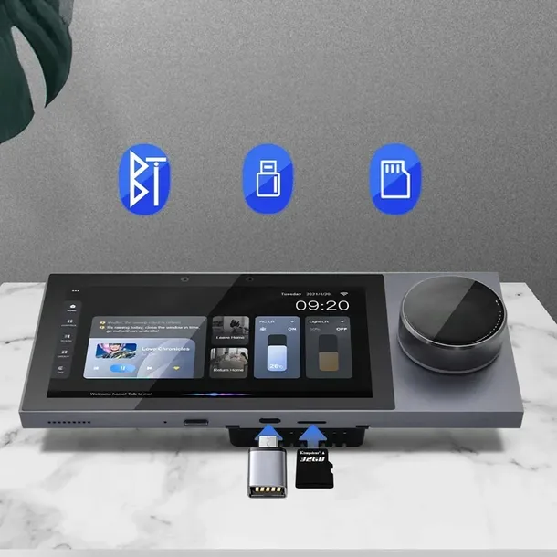 Panel ma wbudowany głośnik 2 W, który może być używany do budzenia, reagowania i łączenia scen. Panel jest wyposażony we wzmacniacz o dużej mocy, który można podłączyć do dwóch głośników 2x25W. Możliwe jest słuchanie muzyki poprzez głośniki podłączone przewodowo do panelu oraz bezprzewodowe parowane z panelem za pomocą Bluetooth. Możliwe jest również sterowanie i wybór muzyki w aplikacji bądź internecie za pomocą komend głosowych.
