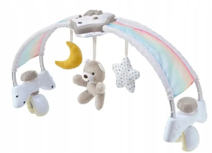 0-6 M panel na łóżeczko z relaksującymi klasycznymi melodiami, zawieszkami oraz delikatnym białym światłem projektora w kształcie gwiazdy, z efektem wygaszania w ostatnich 5 minutach cyklu automatycznego;