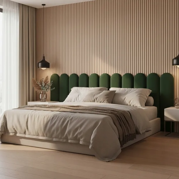 Stwórz wyjątkową aranżację ściany dzięki panelom tapicerowanym "Płotek". To nowoczesne i eleganckie panele, które dzięki miękkiej formie i zaokrąglonej górze nadają wnętrzu przytulnego, designerskiego charakteru. Sprawdzą się w sypialni, salonie, pokoju dziecka, przedpokoju, a także w komercyjnych przestrzeniach, takich jak biura czy garderoby.