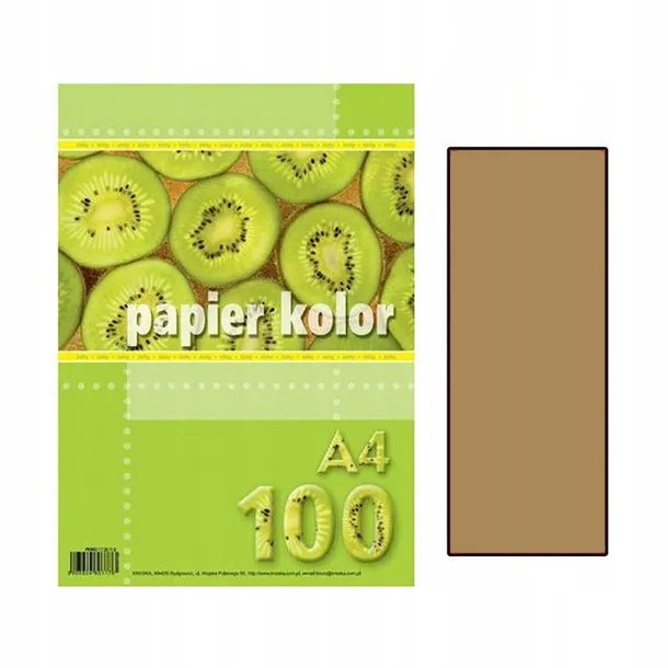 Papier Xero A4 A'100 80g J.Brązowy /Kreska Opakowanie zawiera 100 arkuszy papieru barwionego w masie o gramaturze 80 g/m2 w kolorze brązowym w formacie 297x210 mm.