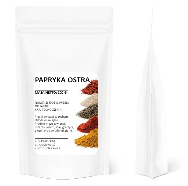 Papryka ostra jako przyprawa dotarła do Hiszpanii w okolicach XVI wieku z Nowego Świata. Obecnie jest jedną z najpopularniejszych przypraw na świecie. Uzyskuje się ją poprzez ususzenie i zmielenie owoców papryki.Doskonale nadaje się do wszelkich pikantnych potraw ze względu na swój intensywny aromat. Jest stosowana w daniach kuchni meksykańskiej, indyjskiej oraz włoskiej.Swoje zastosowanie znalazła również w medycynie chińskiej przy niwelowaniu zmęczenia i złego samopoczucia. Przyprawa posiada bogaty skład- witaminę C, witaminy z grupy B, beta-karoten i kapsaicynę.Papryka jest przez niektórych używana zamiennie z pieprzem do doprawiania wędlin. Dobrze komponuje się z zupami, sosami, sałatkami czy daniami z makaronu lub ryżu. Entuzjaści ostrego akcentu z pewnością ją docenią.