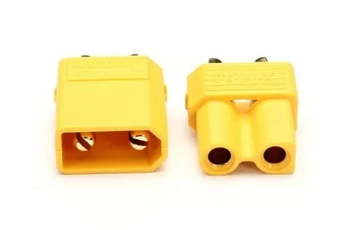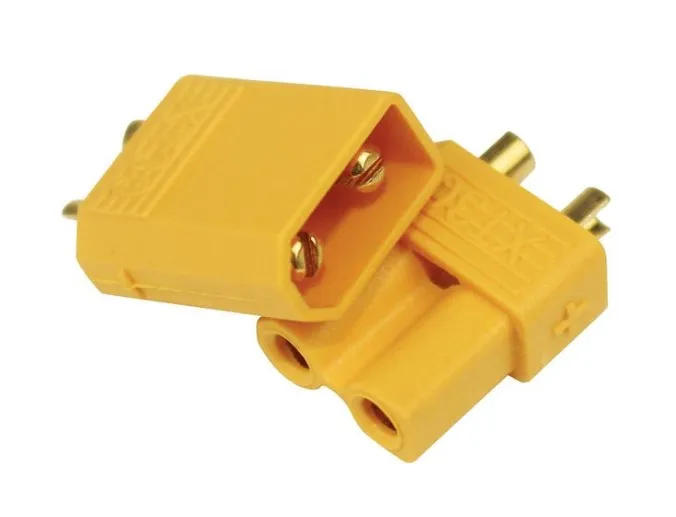 Para oryginalnych konektorów prądowych XT30 (gniazdo + wtyczka). Złącza używane w połączeniach regulator - akumulator. Specjalna budowa konektora na goldach 2 mm pozwala pracować na mniejszych prądach oraz zabezpiecza użytkownika przed odwrotnym wpięciem wtyczki.