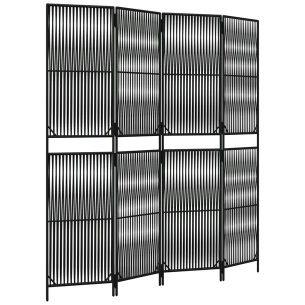 Parawan 4-panelowy, czarny, polirattan