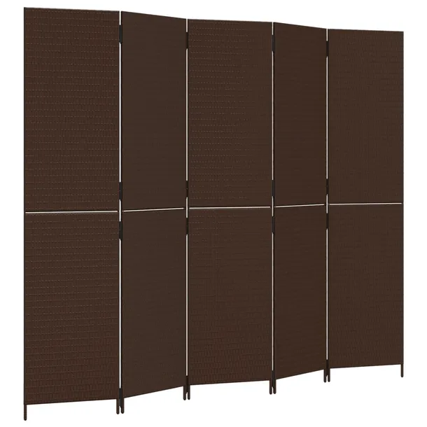 Parawan 5-panelowy, brązowy, polirattan