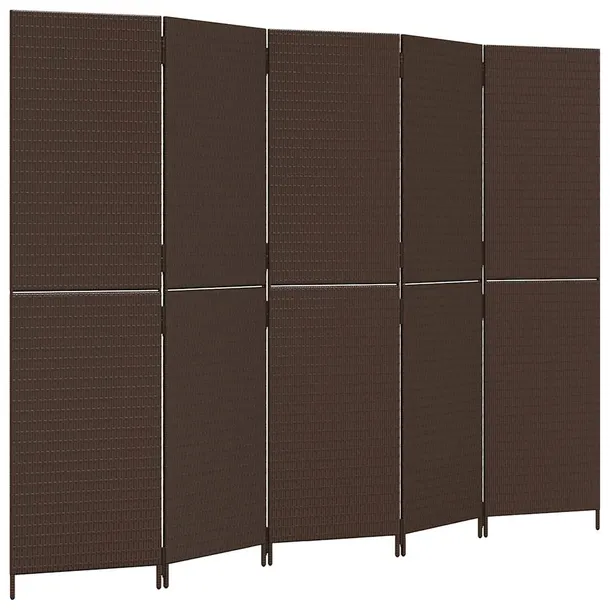 Parawan 5-panelowy, brązowy, polirattan