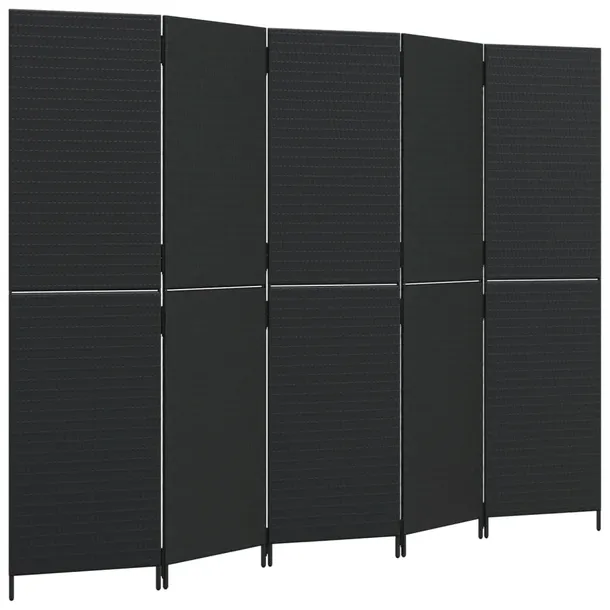 Parawan 5-panelowy, czarny, polirattan