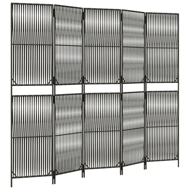 Parawan 5-panelowy, szary, polirattan