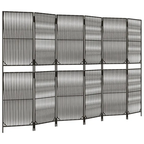 Parawan 6-panelowy, szary, polirattan