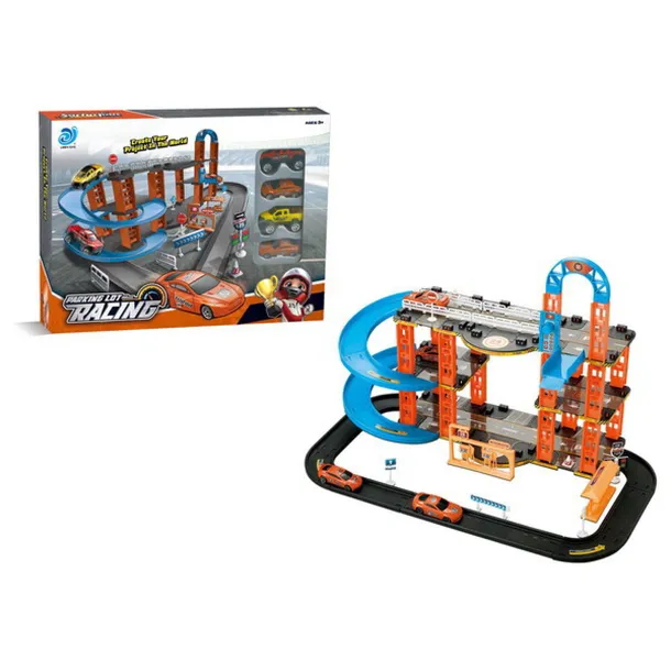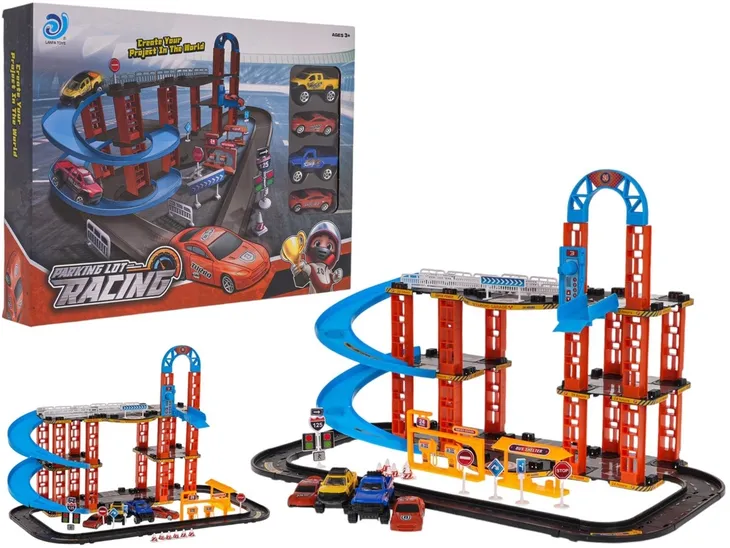 trzypoziomowy PARKING ze zjeżdżalnią dla autek TOR SAMOCHODOWY + 4 autka