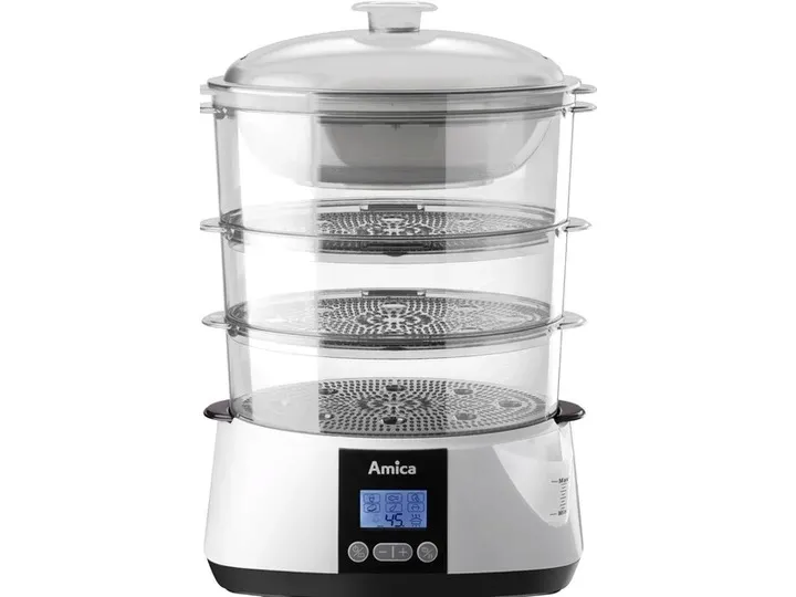 Ten zaawansowany parowar Amica PT3012 wyróżnia się precyzyjnym elektronicznym sterowaniem i wyświetlaczem LCD, które pozwalają na intuicyjne ustawianie czasu do 99 minut oraz wybór spośród 6 automatycznych programów gotowania. Dzięki nim przygotujesz idealnie ugotowane ryby, mięso, warzywa czy ryż, zachowując naturalne wartości odżywcze i aromat potraw na najwyższym poziomie.