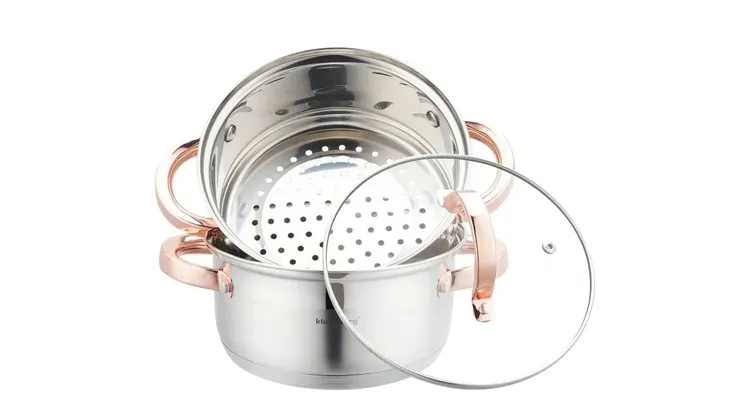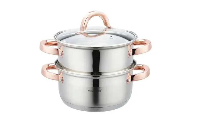 Komplet garnków do gotowania na parze wykonany jest z wysokiej jakości stali nierdzewnej. Wykorzystana stal składa się z najlepszej jakości stopu powszechnie stosowanego w światowej klasy produktach, co gwarantuje jej wysoką odporność na korozję oraz bardzo dobrą wytrzymałość. Zastosowany materiał umożliwia szybkie podgrzanie potraw i przez dłuższy czas utrzymuje ciepło. Produkt przystosowany do gotowania na kuchenkach indukcyjnych, gazowych, elektrycznych, ceramicznych i halogenowych.