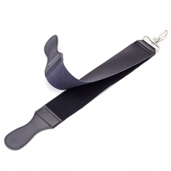 Profesjonalny pas do ostrzenia i polerowania brzytwy z metalowym hakiem do zawieszenia.