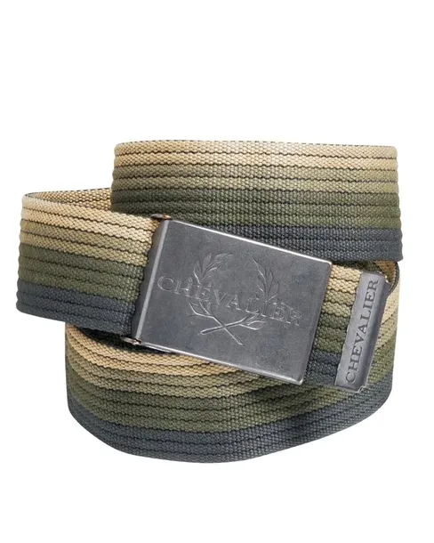 Rainbow Belt to solidny, tkany pasek wykonany w 100% z bawełny. Utrzymany w naturalnych odcieniach beżu, zieleni i szarości, świetnie wpisuje się w outdoorowy styl. Pasek posiada metalową klamrę wykonaną z cynku, ozdobioną wygrawerowanym logo Chevalier. Klamra pełni również funkcję otwieracza do butelek.