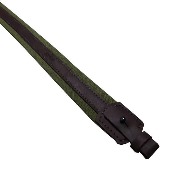 Pasek do broni myśliwskiej wykonany z dwóch warstw brezentu i skóry. Całość wzmocniona solidnymi szwami. Wyposażony w ciche zapięcia umożliwiające szybki demontaż. Idealne rozwiązanie w trakcie wizyt na strzelnicy.