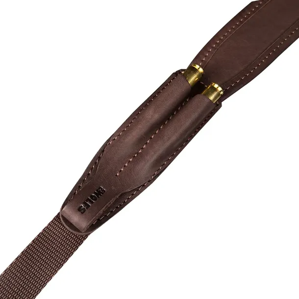 Pasek do broni myśliwskiej ze skóry hydrofobowej (wodoodpornej) nie wymagającej dodatkowej impregnacji. Dodatkowo podszyty neoprenem zapobiegającym zsuwanie się broni z ramienia. Wyposażony w ładownice na 2 sztuki amunicji kulowej, regulowaną długość oraz ciche zapięcie umożliwiające szybki demontaż paska.