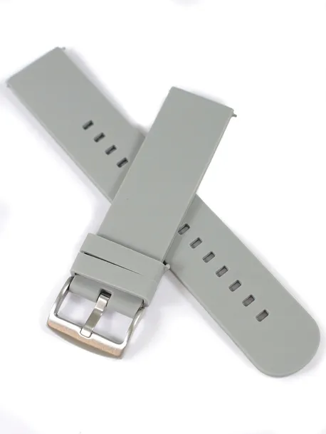 Szary silikonowy prosty gładki matowy miękki płaski pasek do zegarka 22 mm Lavvu. Szerokość 22 mm. Klamerka w kolorze srebrnym. Pasuje do każdego zegarka i smartwatcha ze standardowym mocowaniem o szerokości 22 mm.