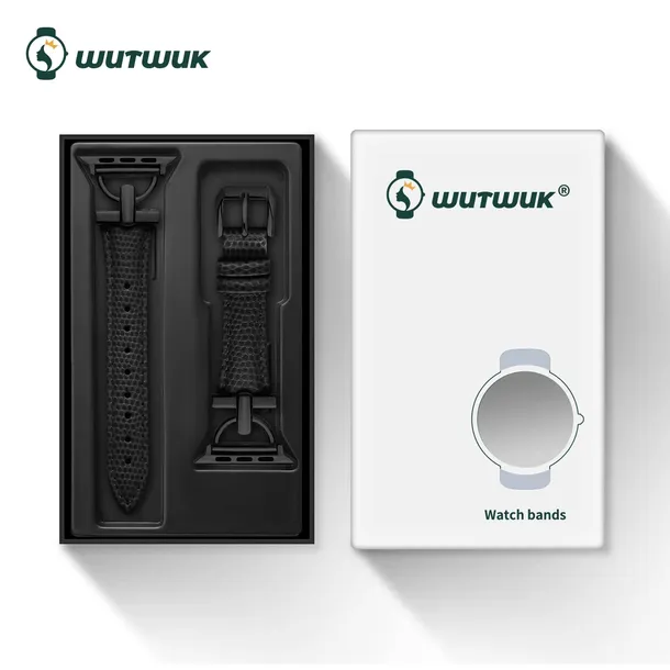 Wutwuk skórzany pasek do Apple Watch SE 3 2 9/8/7/6/5/4 38/40/41 czarny