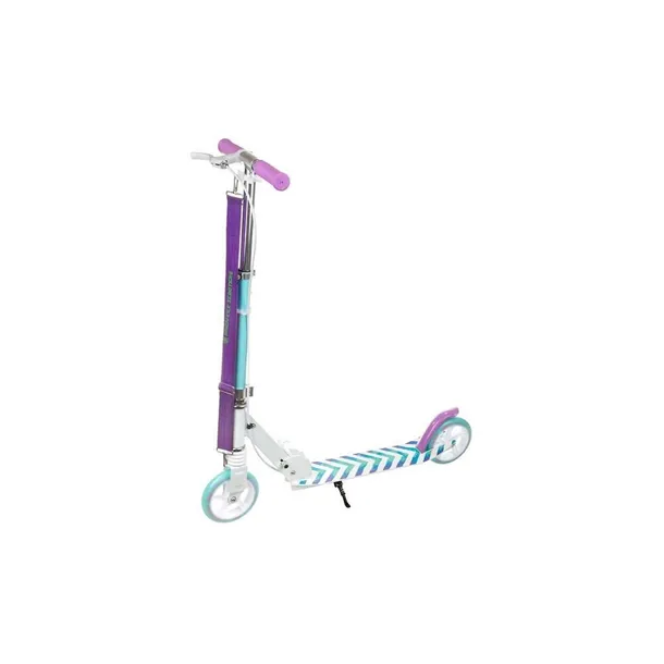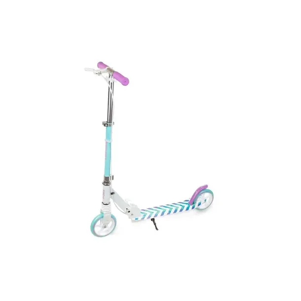 Hulajnoga Raven Pastelle 145 mm z hamulcem. Starannie, dobrze prezentująca się grafika. Bardzo wytrzymała - rama wykonana z trwałego aluminium z dodatkowym wzmocnieniem podestu, dzięki którym maksymalne obciążenie hulajnogi wynosi 100 kg. Koła o średnicy 145mm pozwalają na szybkie i sprawne poruszanie się po mieście.