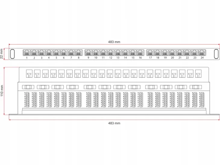 Patch panel OPTIMUM UTP kat.6 24 porty LSA 0.5U