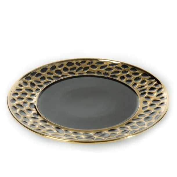 Patera dekoracyjna MADLEN czarna ze złotym wzorem Eurofirany